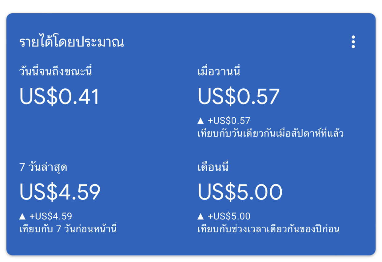 เล่นได้ 7 วัน ได้มา 5 US$ ถือว่าดีมากสำหรับตอนนี้