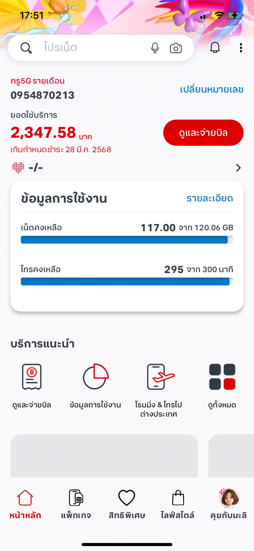 ผมใช้ระบบเติมเงินเมื่อวันที่ 23 ตุลาคม 2568เวลาประมาณ 17:00 น จะซื้อ package เสริมแนะนำใน app true165 บาทต่อเดือนรวม vat เน็ตความเร็ว 6 MBไม่อั้นโทรฟรีทุกเครือข่าย 15 นาทีต่อครั้งพอผมเติมเงินเข้าไปในเ