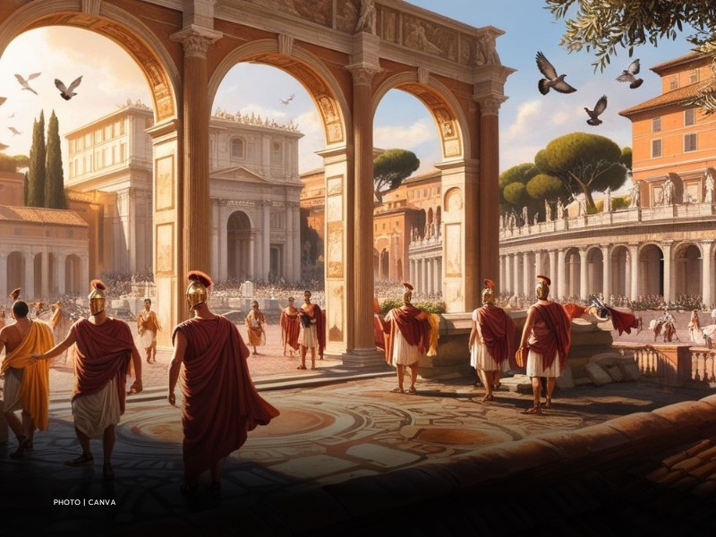และที่สุดแล้ว เธอได้เดินทางมาถึงกรุงโรม และมุ่งหน้าตรงเข้าไปยังพระราชวังจักรพรรดิ ท่ามกลางอิฐหิน หอคอย และเสาแกะสลักสูงตระหง่าน