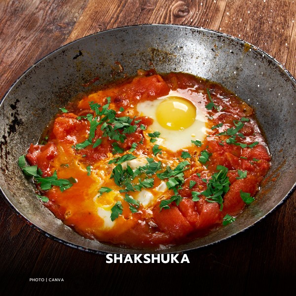 ไข่ลวกในซอสมะเขือเทศร้อนฉ่า หอมเครื่องเทศ รสชาติจัดจ้านราวไฟแห่งความศรัทธาในทะเลทราย เหมาะกินกับขนมปังอบร้อนๆ ในเช้าศักดิ์สิทธิ์