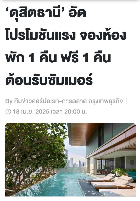 ‘ดุสิตธานี’ อัดโปรโมชันแรง จองห้องพัก 1 คืน ฟรี 1 คืน ต้อนรับซัมเมอร์