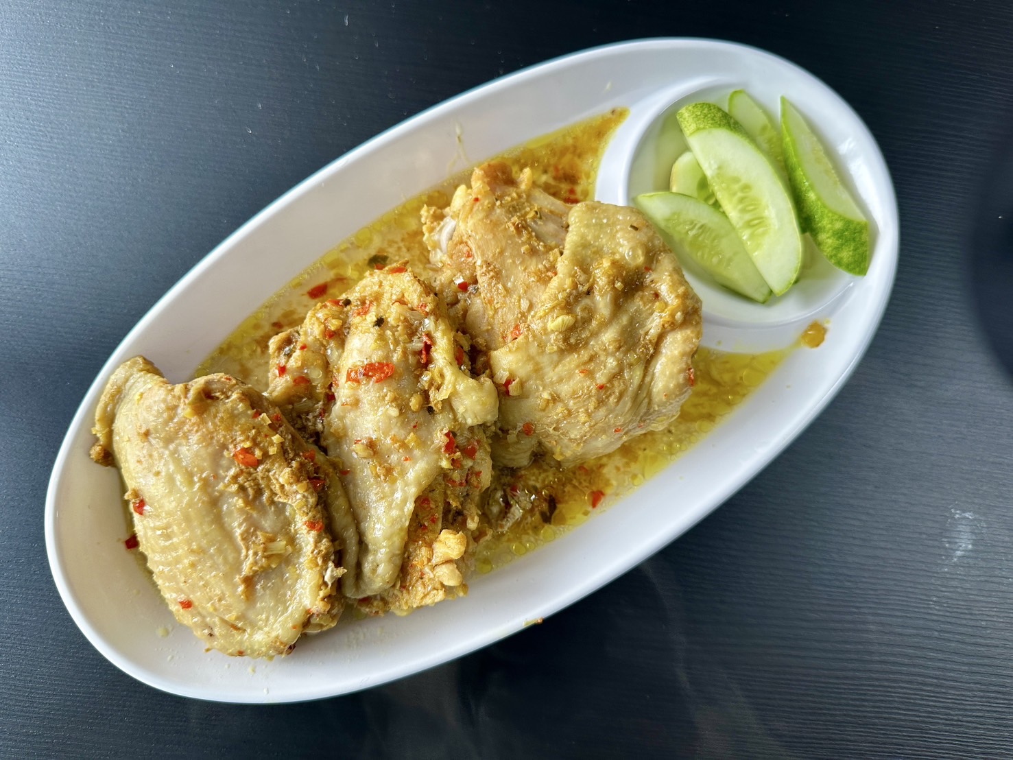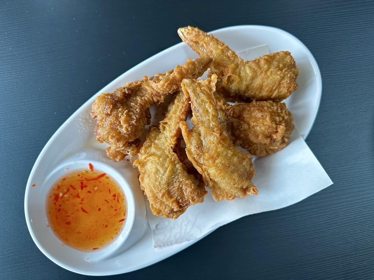 **ปีกไก่ทอด** ก็ทำได้น่าประทับใจ ทอดจนกรอบนอกนุ่มใน ไม่อมน้ำมัน ปรุงรสเค็มอ่อนๆ และถอดกระดูกบางส่วนให้กินสะดวก