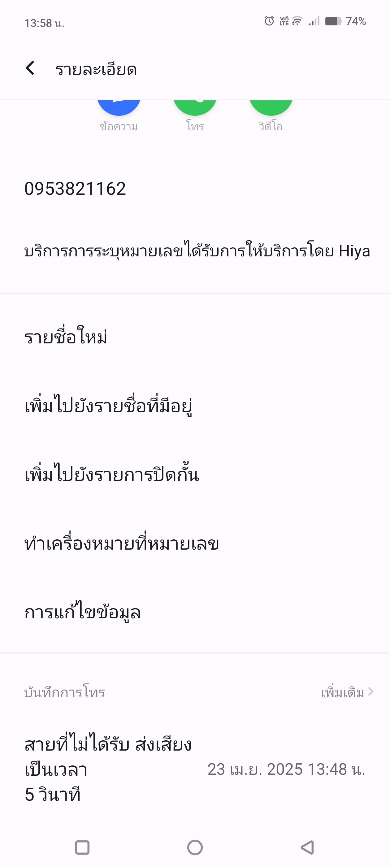 วันนี้ 23 เมษายน 2568 มีเบอร์ของ Sale ทรูโทรมา เป็นเบอร์ 095-382-1162 โทรมา 5 วินาทีแล้ววางไป ไม่ทราบว่ามีอะไรรึเปล่าครับ ผมรับสายไม่ทันครับ