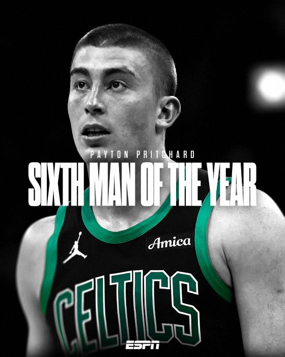 Payton Pritchard ได้รางวัลตัวสํารองยอดเยี่ยมตามคาดด้วยคะเเนน 454 ทิ้งห่าง Malik Beasley ที่ได้ 279 เเต้มเเละ Ty Jerome 91 เเต้ม