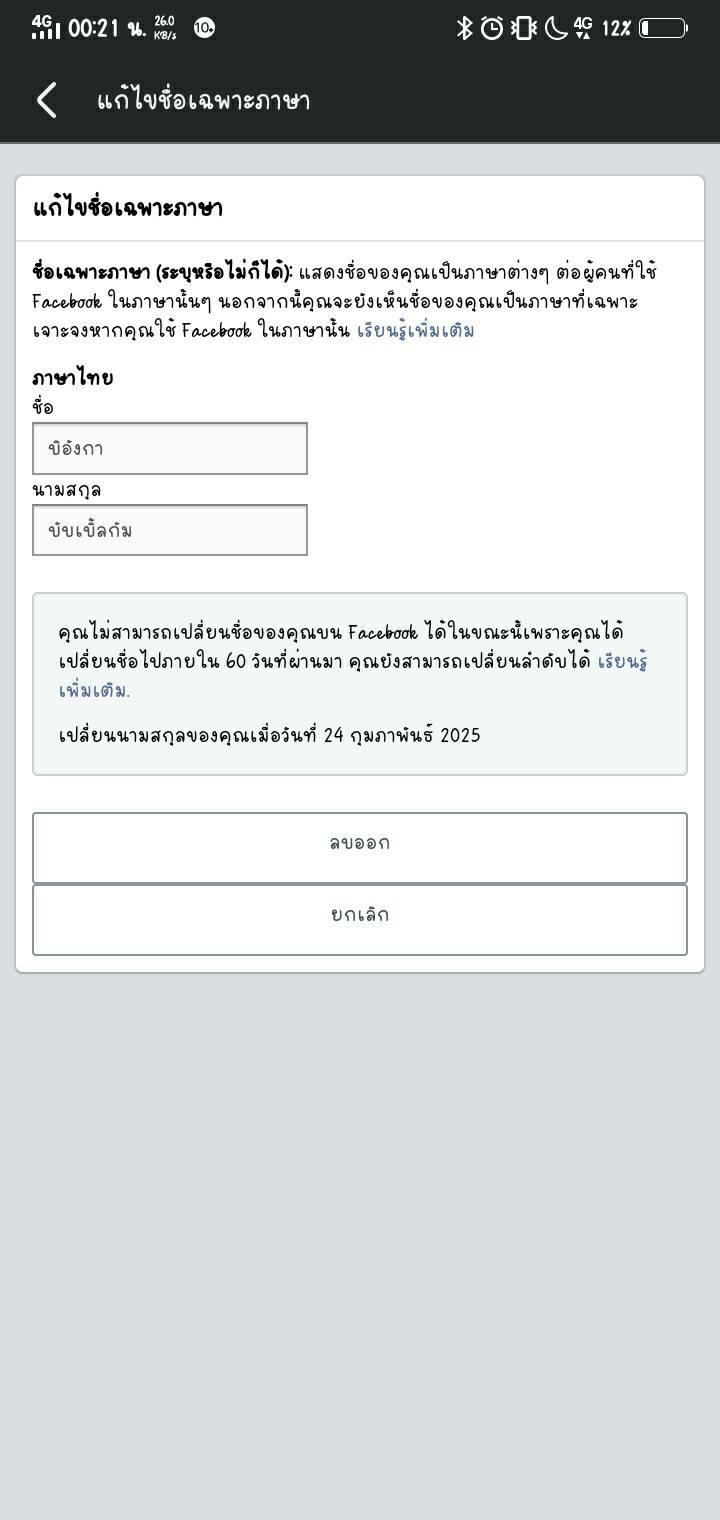 เปลี่ยนชื่อเฉพาะภาษาไม่ได้ใน facebook