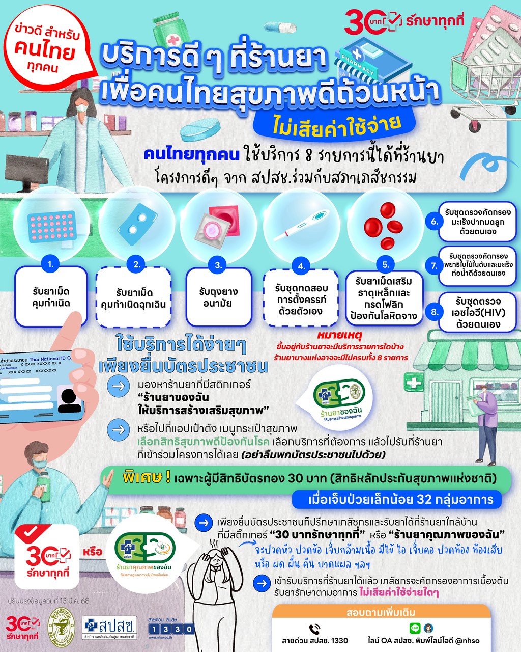 ข่าวดีสำหรับคนไทยทุกคน รับบริการสร้างเสริมสุขภาพที่ร้านยา ไม่เสียค่าใช้จ่าย ใช้แค่บัตรประชาชน