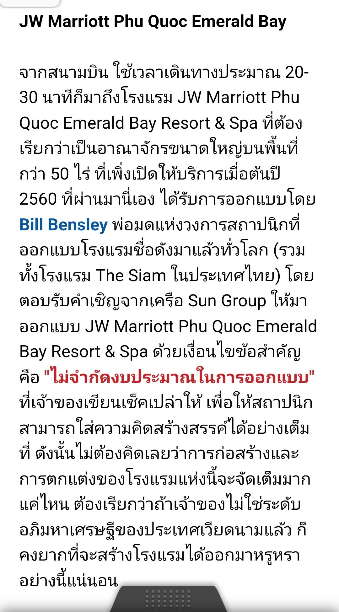บาทความนี้ ที่ผมเข้าไปอ่านแล้ว จึงเป็นแรงบันดาลใจให้ ลองไปค้นหา JW Marriottt Phu Quoc
