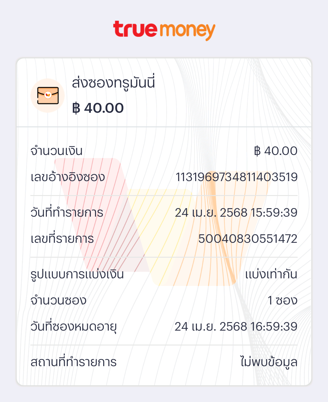 ซองทรูมันนี่ หมดอายุทั่งๆที่ยังไม่มีไครรับและผมพึ่งสร้างอยู่เฉยๆซองหมดอายุเฉย
