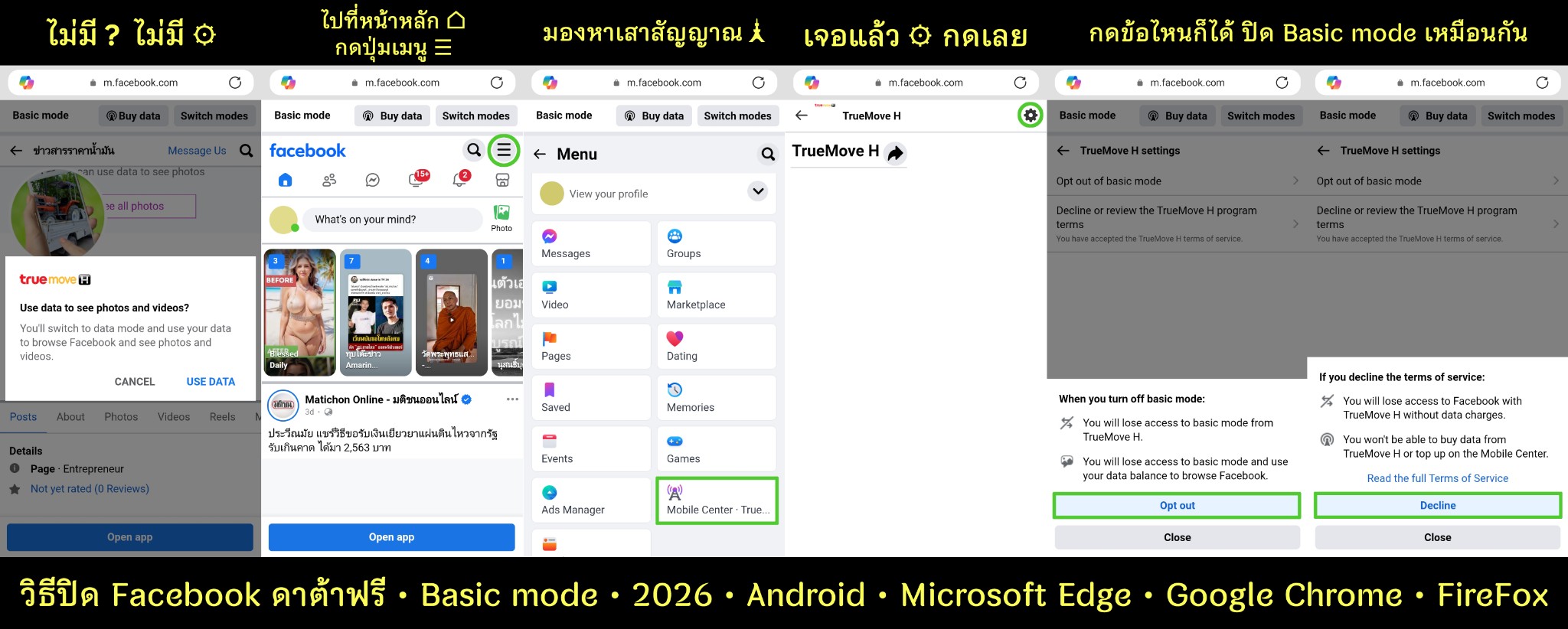 วีธีปิด Facebook ฟรี • Basic Mode • Use Data • TrueMove • Chrome • Edge • FireFox • Android • 2028