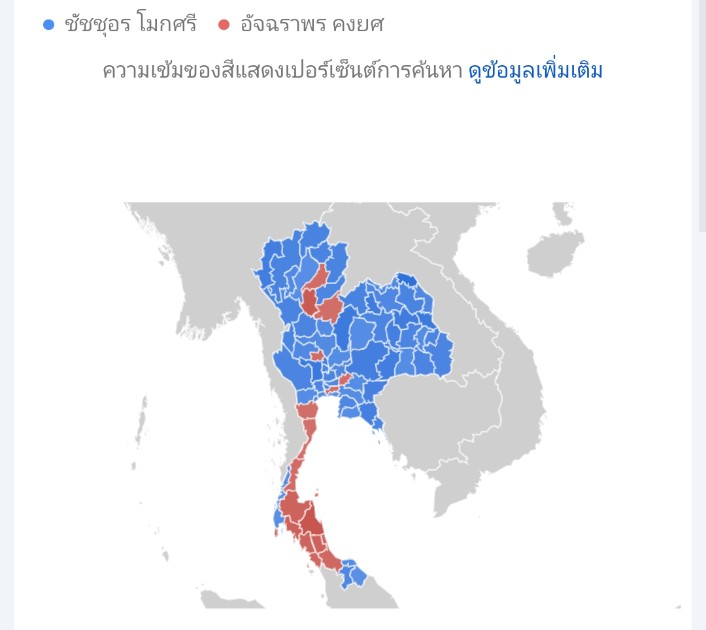 "คนไทยเสิร์ชอะไรบนกูเกิ้ลมากกว่ากันระหว่าง ชัชชุอร โมกศรี กับ อัจฉราพร คงยศ"