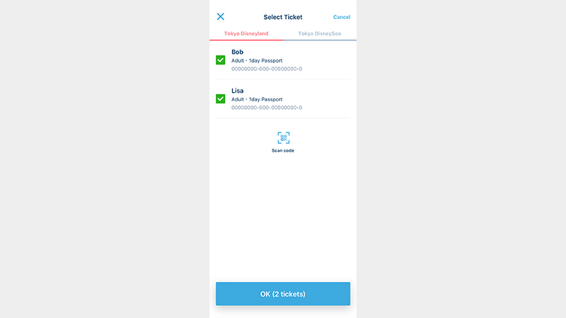จากนั้นเลือกตั๋วของคนในกลุ่ม (เลือกแค่บางใบ หรือทุกใบก็ได้ แล้วแต่คนที่จะเล่นเครื่องเล่นนั้น ๆ )