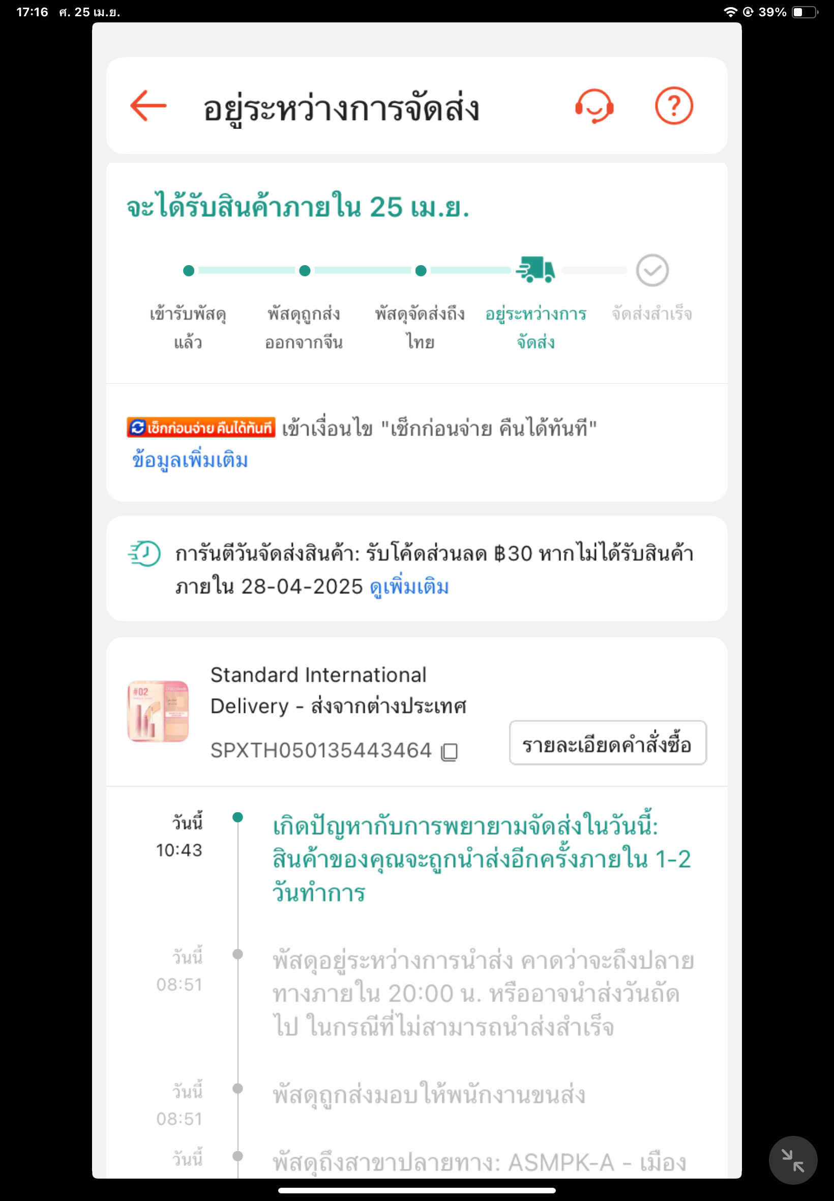 ระบบการันตี ว่าจะถึงภายใน 28-4-68