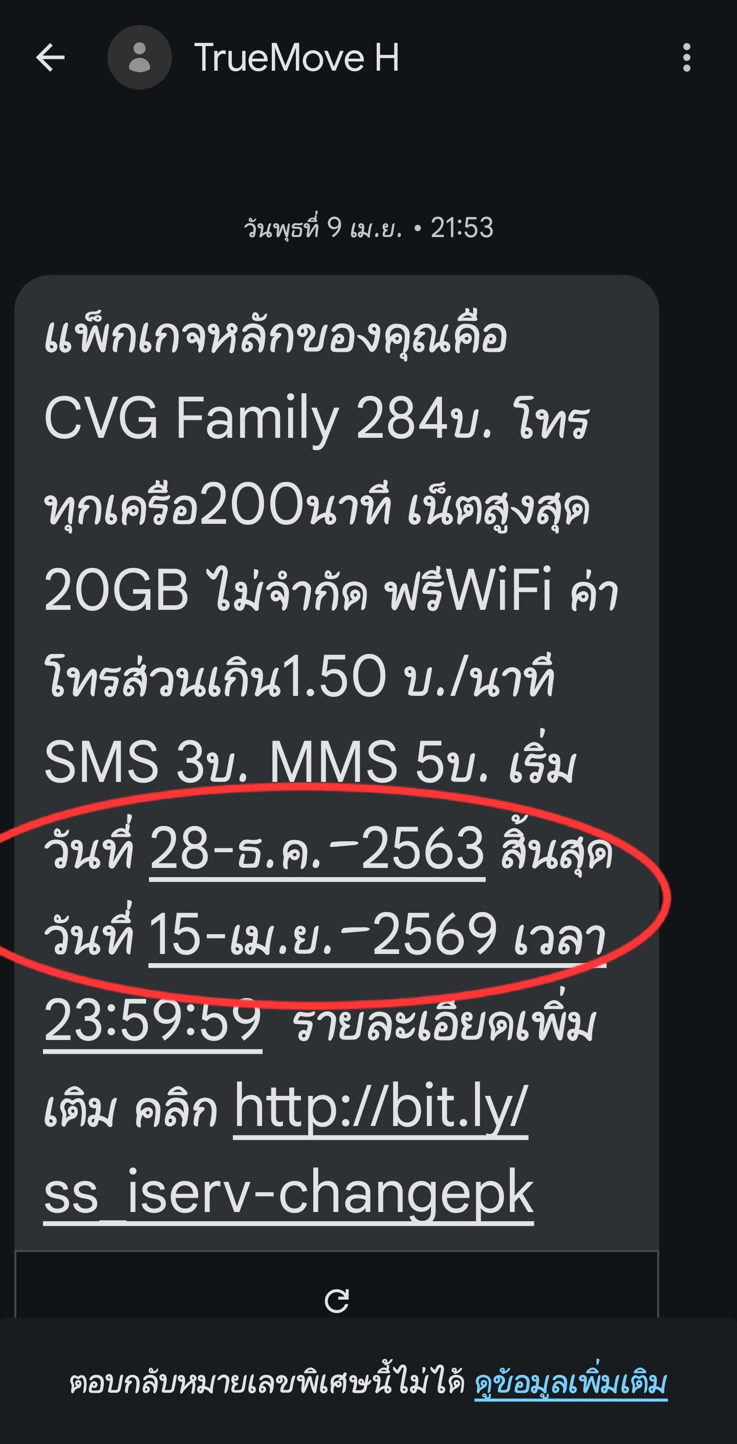จนวันที่ 9 เม.ย. 2568 ได้รับข้อความ SMS เกี่ยวกับการต่อโปรของมือถือ ไม่เข้าใจเลยโทรเข้า Call Center เมื่อวันที่ 10 เม.ย. 2568 พนักงานแจ้งว่าเป็นการต่ออายุโปรเดิมให้อีก 1 ปี เลยสอบถามว่าแล้วปีหน้าถ้าครบกำหนดจะเป็นอย่างไร พนักงานแจ้งว่าถ้าไม่มีโปรนี้แล้ว จะดูโปรที่ใกล้เคียงให้ เพื่อต่อโปร เลยแจ้งกับพนักงานเกี่ยวกับครั้งแรกที่มีการย้ายมือถือเข้ามาใช้โปรนี้ พนักงานที่เซ็นทรัล พระราม3 แนะนำ และยังบอกว่าเป็นการผูกโปรกับเน็ตบ้านที่ใช้อยู่ จะสามารถใช้โปรนี้ได้ตลอดไปจนกว่าจะยกเลิกเน็ตบ้าน และที่ผ่านมาหลายปีก็ไม่เคยมีการแจ้งใดๆ ใช้โปรนี้ได้ตามที่พนักงานเซ็นทรัล พระราม3 แจ้ง พนักงานเลยจะประสานงานกับฝ่ายงานที่เกี่ยวข้องให้ เลยแจ้งว่าให้โทรกลับเพื่อหาข้อสรุป