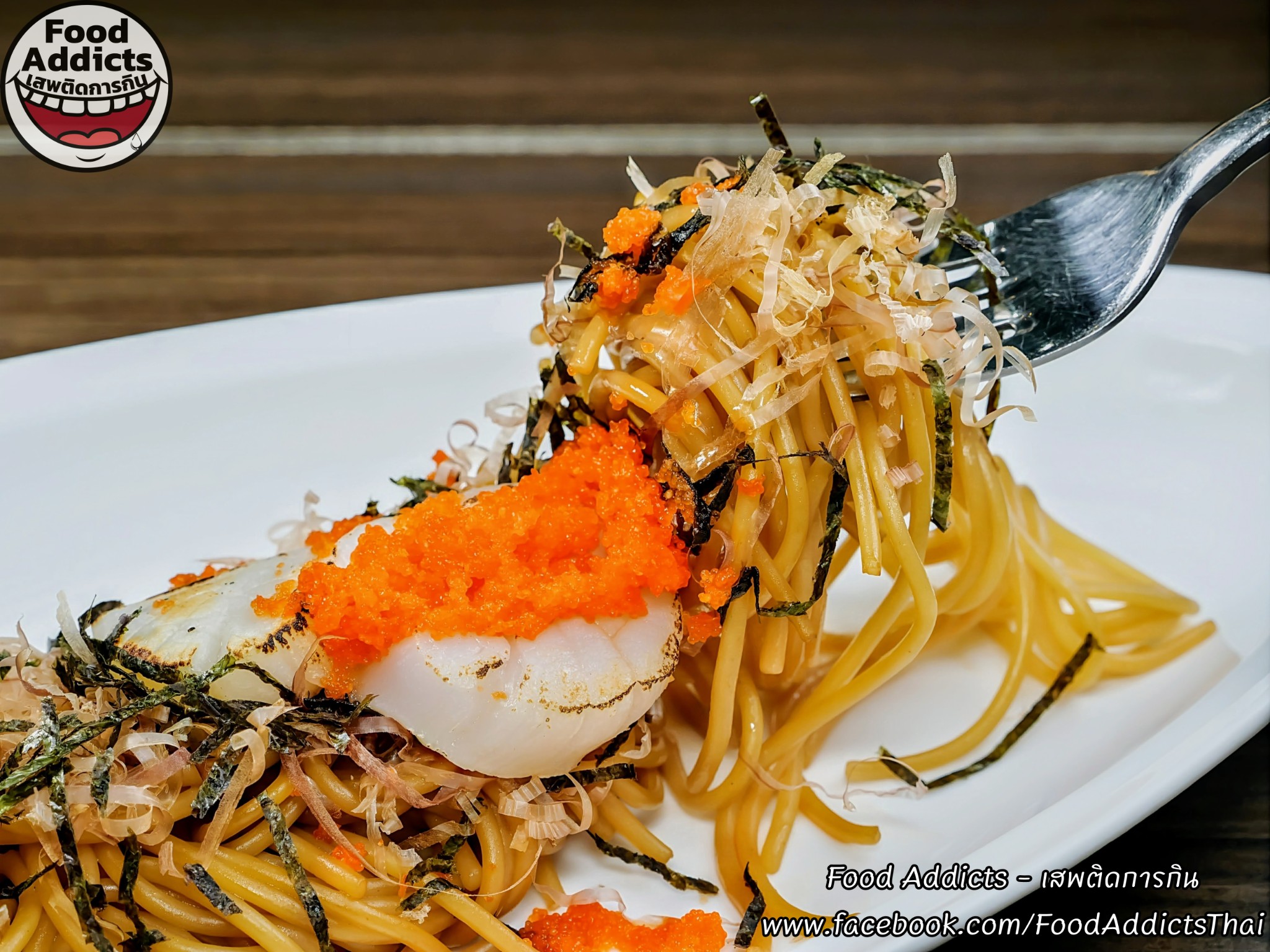 มาต่อกันด้วยจานคาร์บหรือเมนูเกี่ยวกับคาร์โบไฮเดรตซึ่งคุณเชฟ Martin Blunos (มาร์ติน บลูโนส) ภูมิใจนำเสนอมากที่สุดนั่นก็คือ "Grill Pumkin With Risotto Rice" ราคา 295 บาท เลือกใช้เฉพาะข้าวสายพันธุ์คาร์นาโรลลีเพาะปลูกบริเวณทางตอนเหนือของประเทศอิตาลีลักษณะภายนอกอ้วนกลมสั้นปริมาณแป้งสูงยางน้อยสัมผัสแน่นกว่าฝั่งเอเชียปกติค่อนข้างกระด้างผ่านกระบวนการต้มน้ำซุปผักรวมหลากหลายชนิดเวลานานจนดูดซึมเข้าเนื้อรับประทานง่ายกว่าภัตตาคารเจ้าอื่นๆใส่เห็ดออเร็นจิหั่นชิ้นลูกเต๋าขนาดเล็กแทนเนื้อสัตว์ผสมชีสถึง 3 ชนิดผสานกับฟักทองสัญชาติญี่ปุ่นรสชาติเค็มกลมกล่อมสีเหลืองสวยงามท็อปปิ้งด้วยฟักทองย่างปักชีสอบกรอบลักษณะเหมือนปะการังสวยงามถือเป็นจานมังสวิรัติที่อร่อยเกินคาดประดุจผลงานศิลปะห้ามพลาดเด็ดขาด / "Spaghetti With Hotate Ebiko & Seaweed In Japanese Sauce" ราคา 395 บาท สปาเก็ตตี้ไซส์มาตรฐานประมาณเบอร์ 3 ลวกสุกกำลังพอเหมาะระดับ Al Dente ตั้งน้ำเดือดจับเวลาประมาณ 8-10 นาทีเหนียวนุ่มสู้ฟันคลุกเคล้าซอสสูตรพิเศษซึ่งคิดค้นเองตำรับดินแดนอาทิตย์อุทัยกลิ่นซีอิ๊วโชยุเด่นชัดตกแต่งหอยเชลล์โฮตาเตะฮอกไกโดเกรดซาชิมิแบ่งครึ่งลนไฟ,ไข่ปลาบินสีส้ม,ผงปลาคัตสึโอะและสาหร่ายโนริคล้ายยากิโซบะฟิวชั่นกันอย่างลงตัวมีเอกลักษณ์ครับผม