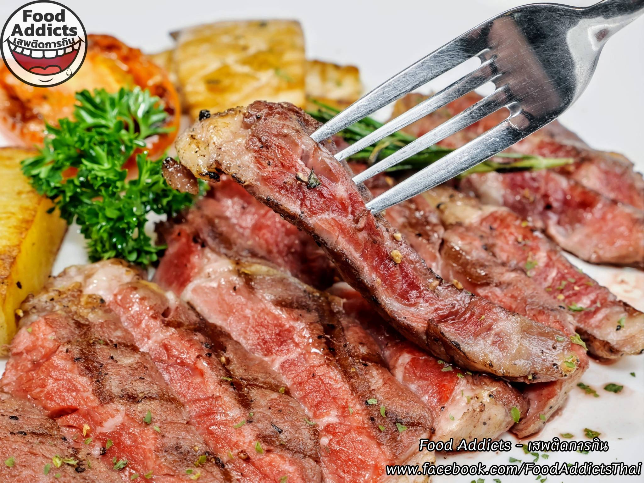 อีกหนึ่งรายการ Signature ซึ่งอยู่คู่กับทางร้าน "Cook By Food Identity" มัดใจลูกค้ามาได้อย่างยาวนานปกติก่อนจับมือร่วมกับเชฟ Martin Blunos (มาร์ติน บลูโนส) เขาใช้ระบบซูเปอร์มาร์เก็ตช็อปปิ้งหยิบเองบริเวณตู้แช่แข็งชั่งน้ำหนักพร้อมปรุงให้โดยคิด Service Charge แค่ 5% ปัจจุบันต้องออเดอร์ผ่านเล่มเมนูเหมือนภัตตาคารทั่วไปนั่นก็คือ "Australian Black Angus Ribeye" ราคา 795 บาท เนื้อบริเวณสันแหลมของวัวสายพันธุ์แบล็กแองกัสนำเข้าจากฟาร์มเลี้ยงควบคุมตามมาตรฐานส่งออกแห่งประเทศออสเตรเลียเกรด Grin-Fed ขุนด้วยธัญพืชแทรกไขมันสีขาวสวยงามประดุจลายหินอ่อนขนาด 220 กรัมกลิ่นค่อนข้างเข้มข้นรสชาติเด่นชัด โรยเกลือสมุทร,บิดพริกไทยเล็กน้อยย่างบนกระทะเหล็กหล่อปรับไฟแรงอุณหภูมิสูงสุดควันโขมงเต็มครัวเลือกความสุกได้รวม 5 ระดับเช่น 1. Rare ค่อนข้างดิบ 2. Medium Rare ผิวนอกสุกภายในแดง 3. Medium อมชมพูนิดหน่อย 4. Medium Well ชุ่มฉ่ำกำลังพอดี 5. Well Done สุกเกรียม 100% ราดเนยใส่ก้านสมุนไพรโรสแมรี่สดเพื่อดับคาวรับประทานคู่ซอสเกรวี่,แจ่วฉบับอีสานเปรี้ยวหวาน เคียงเห็ดออเร็นจิผัดเนยกระเทียมมะเขือเทศย่างไฟและ Signature เฉพาะสาขาราชพฤกษ์-พุทธมณฑลเท่านั้นได้แก่ "Pommes Anna" มันฝรั่งอบแผ่นบางเรียงพันชั้นสไตล์ฝรั่งเศสครับผม