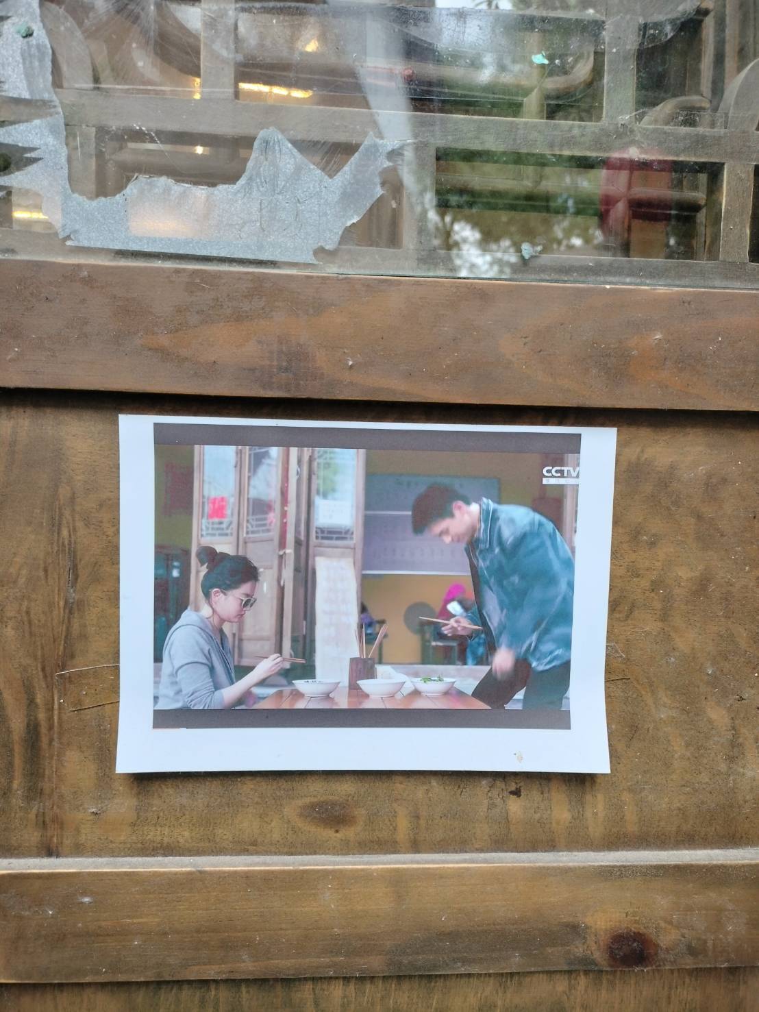ร้านนี้แปะภาพ"สวี่หงโต้ว"และ"อาเหยา" นางเอกและพระเอกของเรื่องMeet yourself ไว้ด้วย