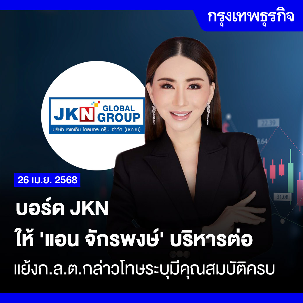 นายจักรพงษ์ จักราจุฑาธิบดิ์ประธานเจ้าหน้าที่บริหาร และกรรมการผู้จัดการ บริษัท เจเคเอ็น โกลบอล กรุ๊ป จำกัด (มหาชน) หรือ JKN แจ้งมติประชุมบอร์ดเมื่อวันที่ 25 เม.ย. 2568