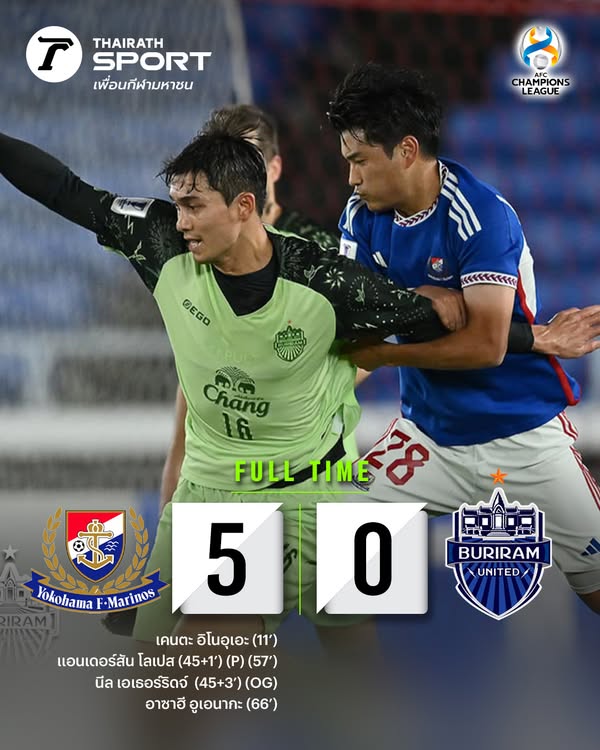 มารินอส ในรอบ ลีก ก็พึ่งเจอกับบุรีรัมย์ ผล ว่าที่แชมป์ไทยลีกโดนไป 5 เม็ด