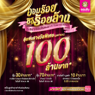 ออมสินจัดโปร เงินฝาก 150 วัน รับดอกเบี้ย 2.55% ต่อปี พร้อมสลากออมร้อยชิงล้าน