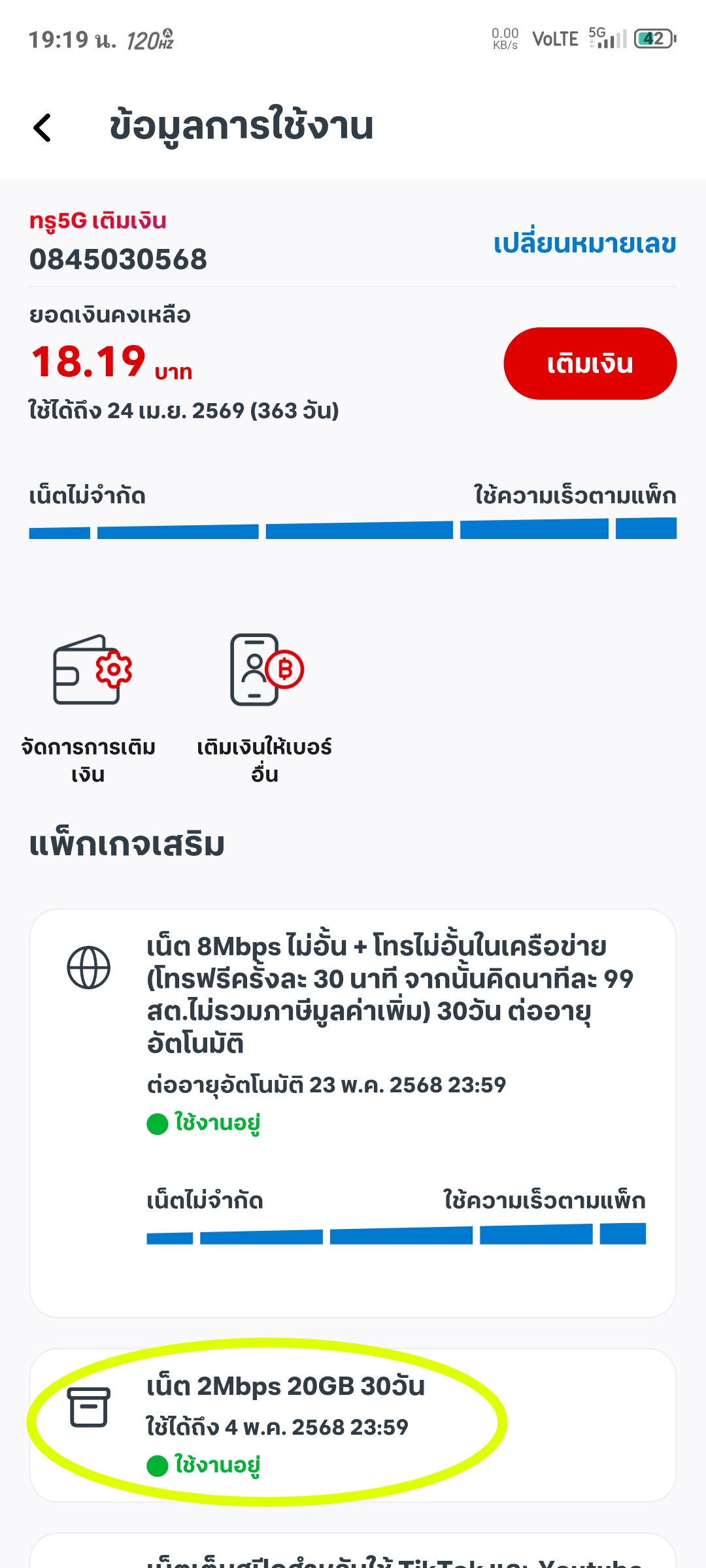 TrueMove h ใช้แพ็คเกจความเร็วอินเตอร์เน็ต 30 MB จะยกเลิกแพ็คเกจอื่นยังไง