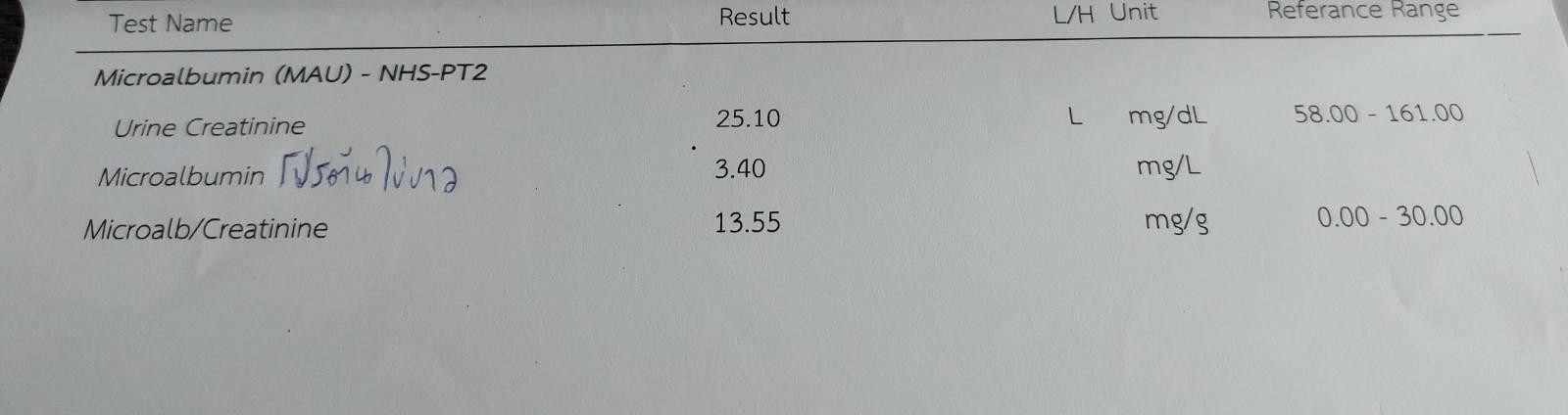 ด.5/61 ผลตรวจ creatinine 0.89 mg/dl eGFR 113.13 ml/min FBS 99 mg/dl ด.8/62 ผลตรวจ creatinine &nbs