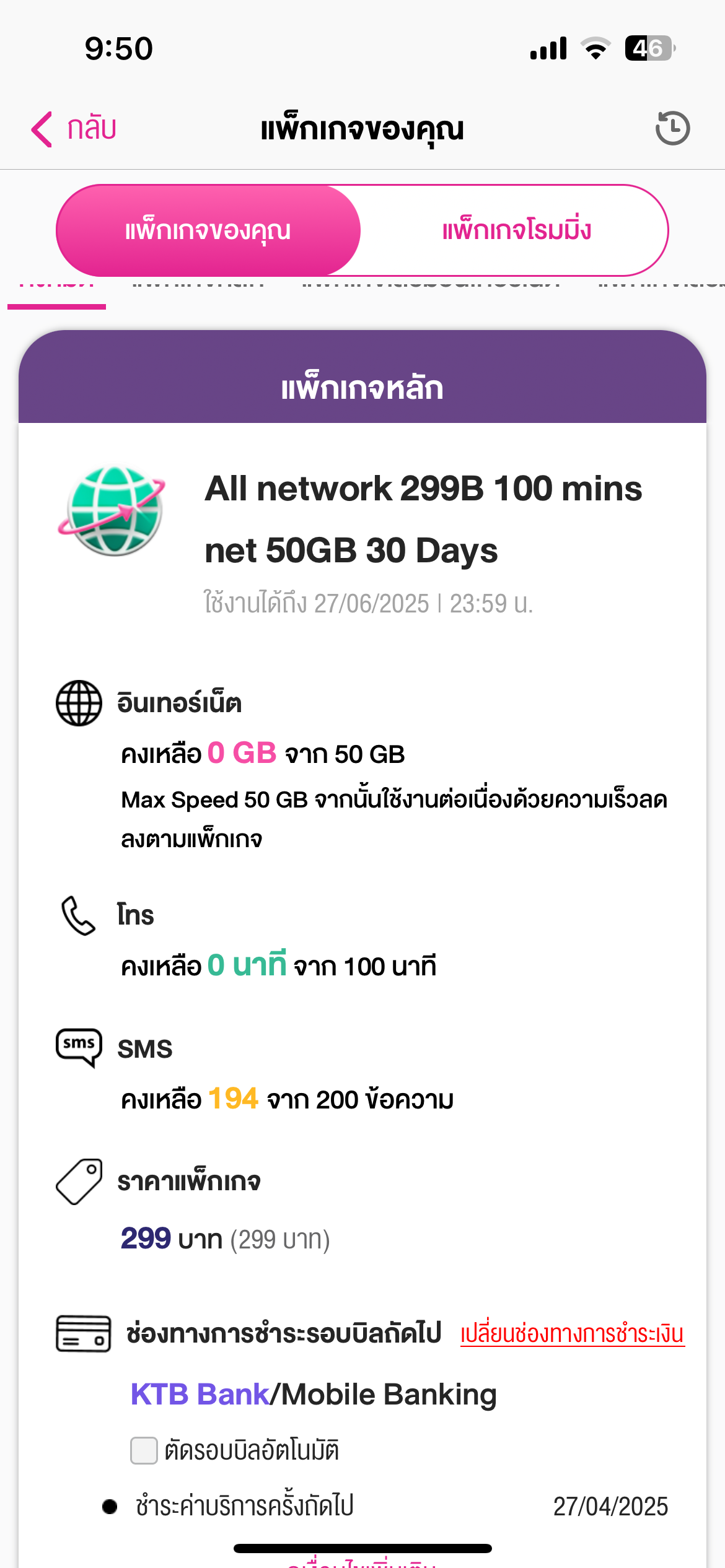 • โอนชำระเงินผ่านแอปธนาคารกรุงไทย จำนวน 299 บาทและมีข้อความตอบกลับใน Massage ว่าได้รับยอดการชำระแล้ว แต่ยังไม่สามารถใช้งานได้ จึงคุยกับ Robot chat ผ่าน Application GOMO ได้มีการให้ส่งหนังสือคำร้องไปเพื่อตรวจสอบและได้ทำการส่งหลังสือไป