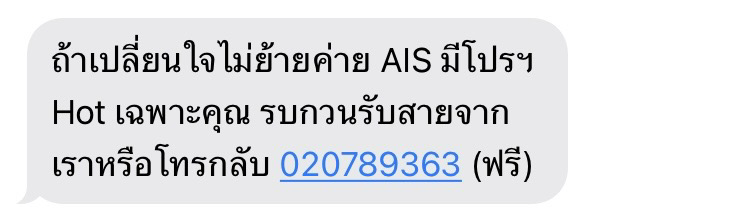 จะย้ายค่าย แต่มีข้อความจากAIS เสนอโปรมาให้ แต่ติดกลับกลับหาคอลเซ็นเตอร์ไม่ได้ ไม่มีใครรับสาย รบกวนเช็คโปรให้ด้วยค่ะ ถ้าเสนอโปรก็ขอโปรที่ไม่ต่างมากจากโปรเก่าที่ใช้นะคะ