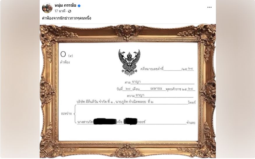 อุ๊ย! หนุ่ม กรรชัย โชว์หมายศาลพร้อมลั่น คำฟ้องจากนักข่าวกากๆคนนึง