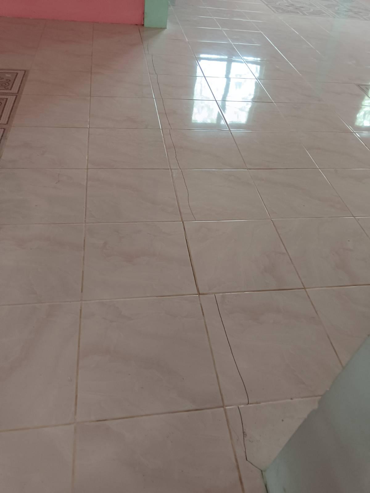 บ้านเป็นอาคารพาณิชย์ 2 1/2 ชั้น กำลังจะปูพื้นกระเบื้องแกรนิตโต ก็สังเกตเห็นพื้นชั้นล่างเกิดรอยร้าว แบบนี้ บ้านมีโอกาสทรุดจนอันตรายไหม? ต้องแก้ไขไหม? ถ้าจะปูพื้นกระเบื้องควรทำอย่างไร? ? ขอความรู้ และคำ