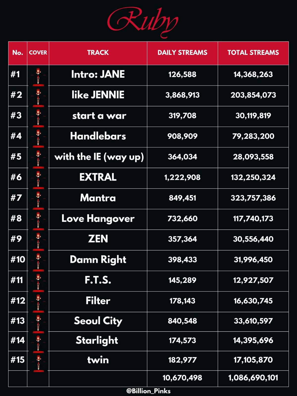 Seoul City เพลงบีไซด์ในอัลบั้ม 'RUBY' ของเจนนี่ ทำยอดสตรีมบน Spotify แตะ 800k อีกครั้ง ตอนนี้ทำยอดสตรีมแซงเพลงโปรโมทอย่าง Love Hangover และเกือบเท่า Mantra แล้วค่ะ