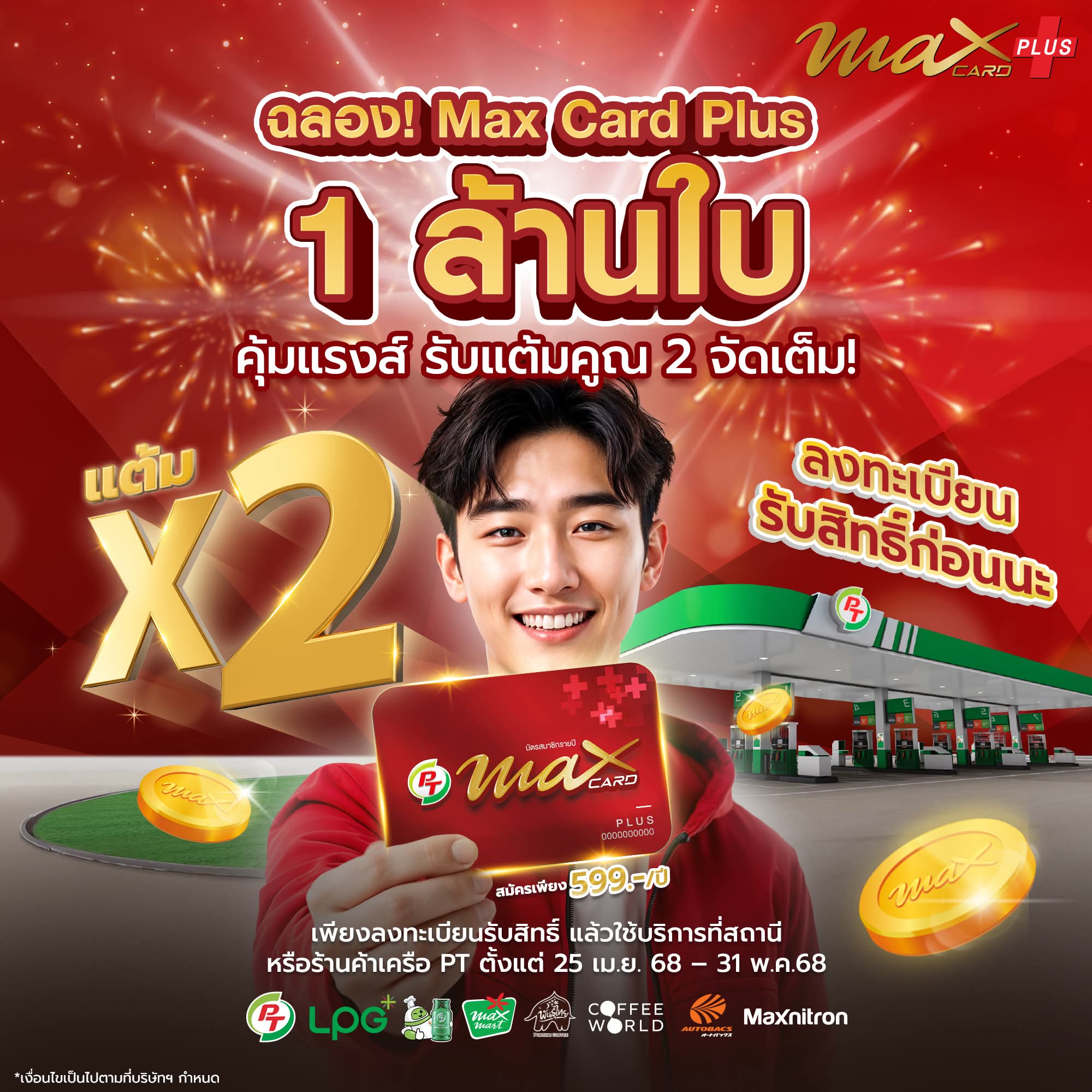 📍พิเศษเฉพาะสมาชิก Max Card Plus และ Max Card Plus EV รับแต้ม x2 ไปเลย!
