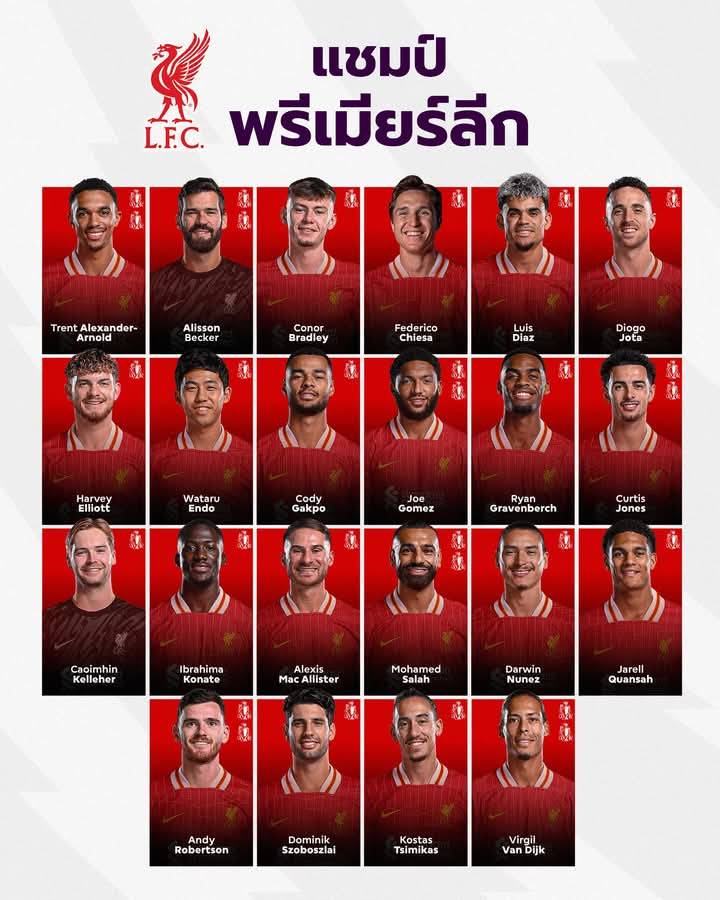 โฉมหน้าขุนพลลิเวอร์พูล แชมป์พรีเมียร์ลีก 2024/25