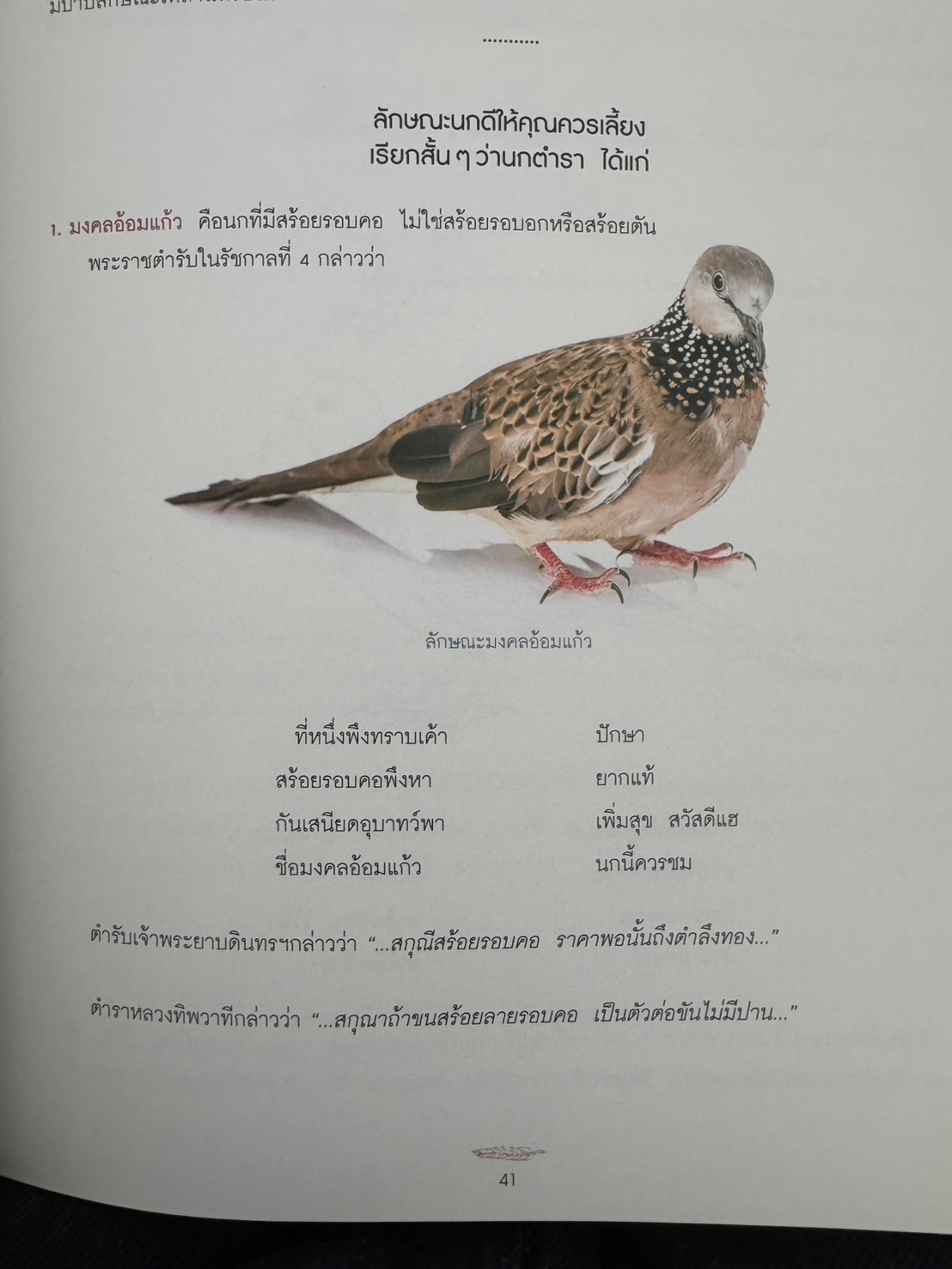 1. มงคลอ้อมแก้ว คือนกที่มีสร้อยรอบคอ ไม่ใช่สร้อยรอบอกหรือสร้อยตัน