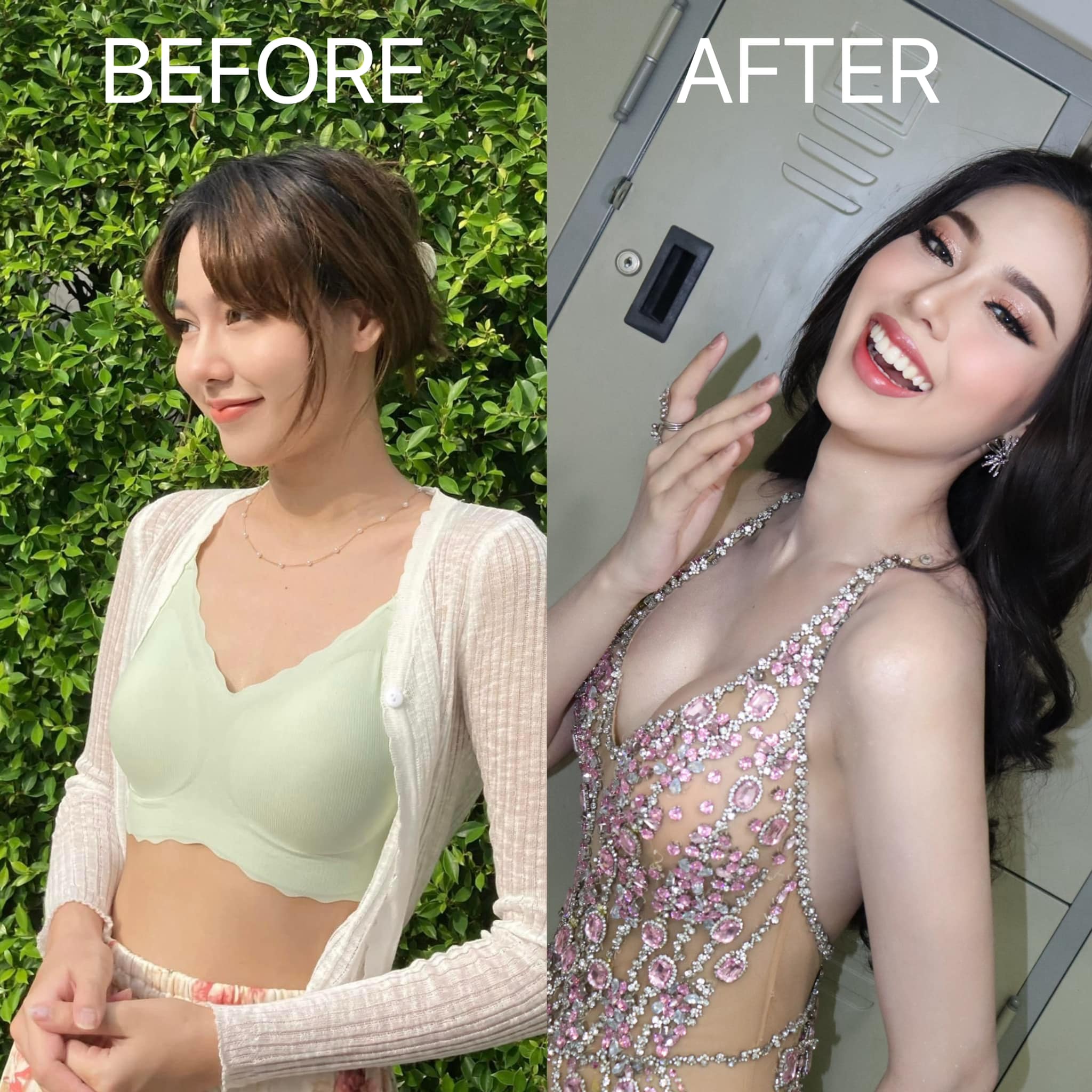 อะนี่ๆๆ เทียบรูปให้ดูแบบชัดๆ บอกเลยว่าการทำหน้าอกมีผลต่อการแต่งตัวของแป้งม้ากกกก 5555555 เชื่อไหมล่ะว่ามั่นใจขึ้นเยอะ 😍