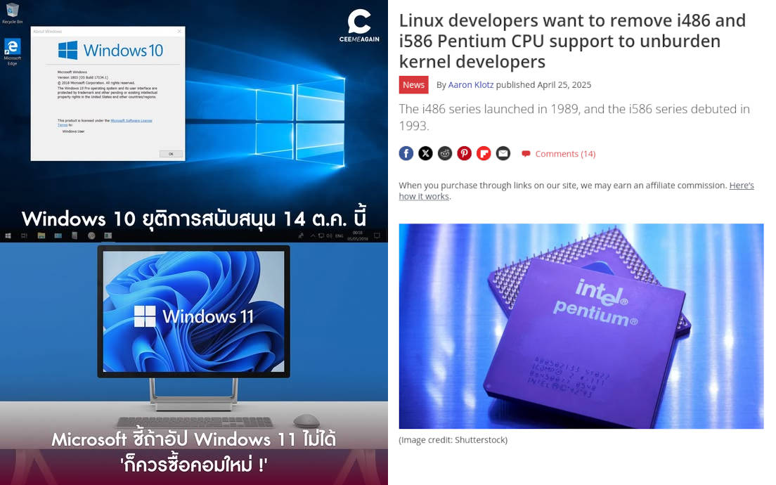 เห็นข่าววินโดวส์และลินุกซ์จะเลิกรองรับซีพียูเก่าแล้วเกิดการเปรียบเทียบกันอย่างแรงครับ