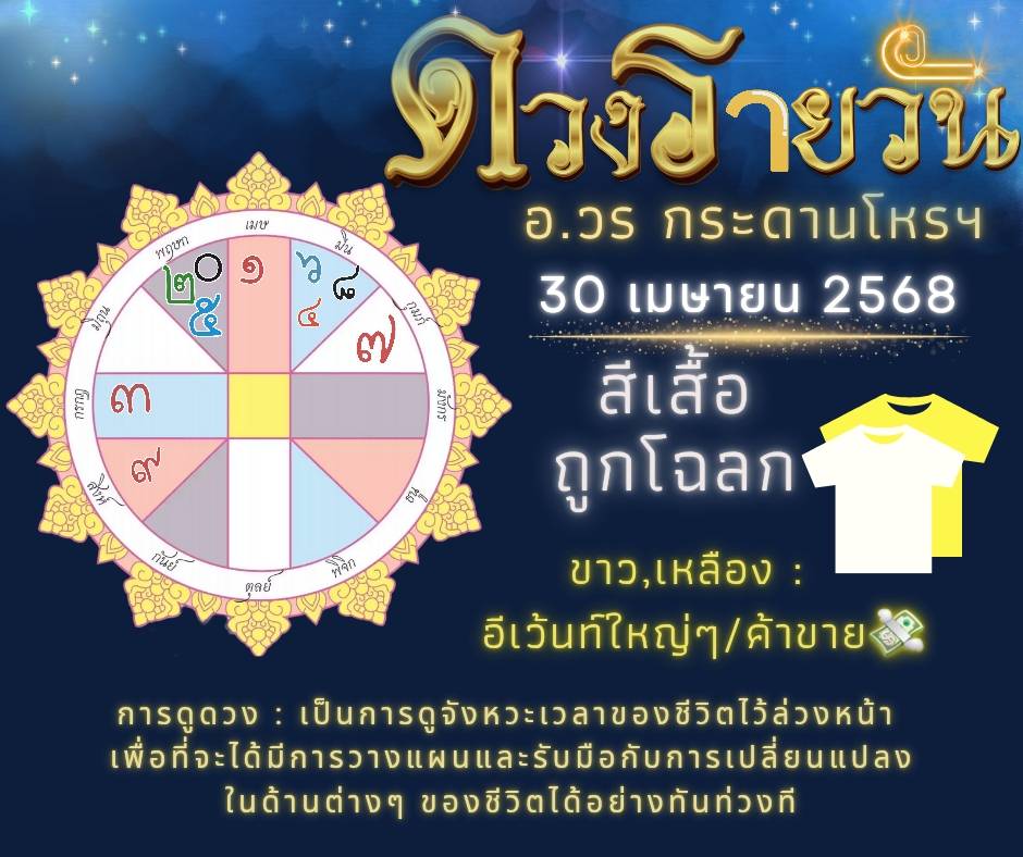 Ψ ☀ ดวงวันนี้ 30 เมษายน พ.ศ. 2568 โดย อ.วร กระดานโหรฯ ☀ 卐