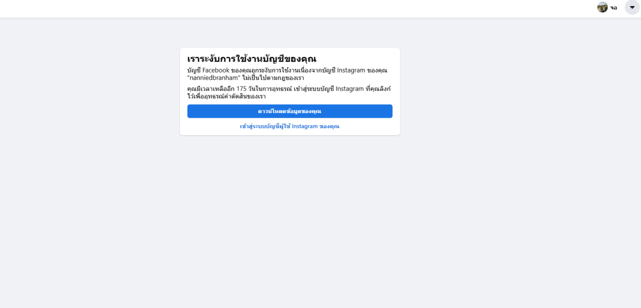 เฟสโดนระงับใช้งานจากไอจีที่โดนแบนมั่วครับ
