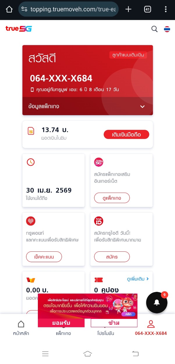 จะซื้อแพ็คเสริมทรู แต่พอเติมเงินจะซื้อแล้วโปรหาย