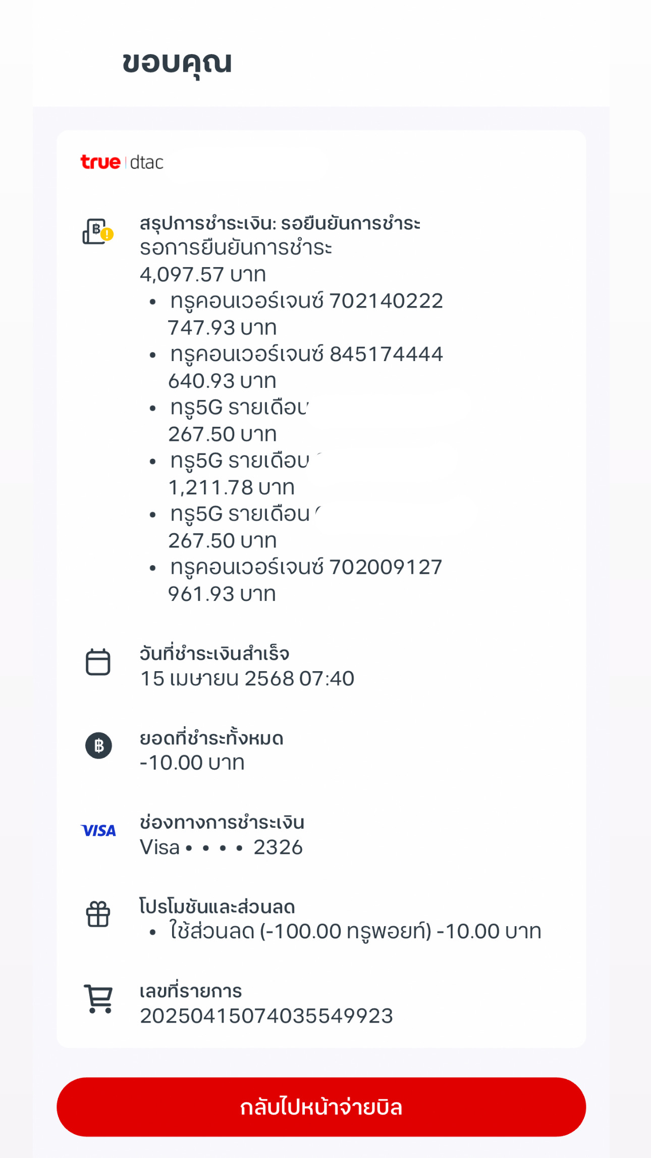 จ่ายบิล True แล้ว แต่ในแอพ iService ยังแจ้งว่าค้างชำระ ไม่ตัดยอดให้
