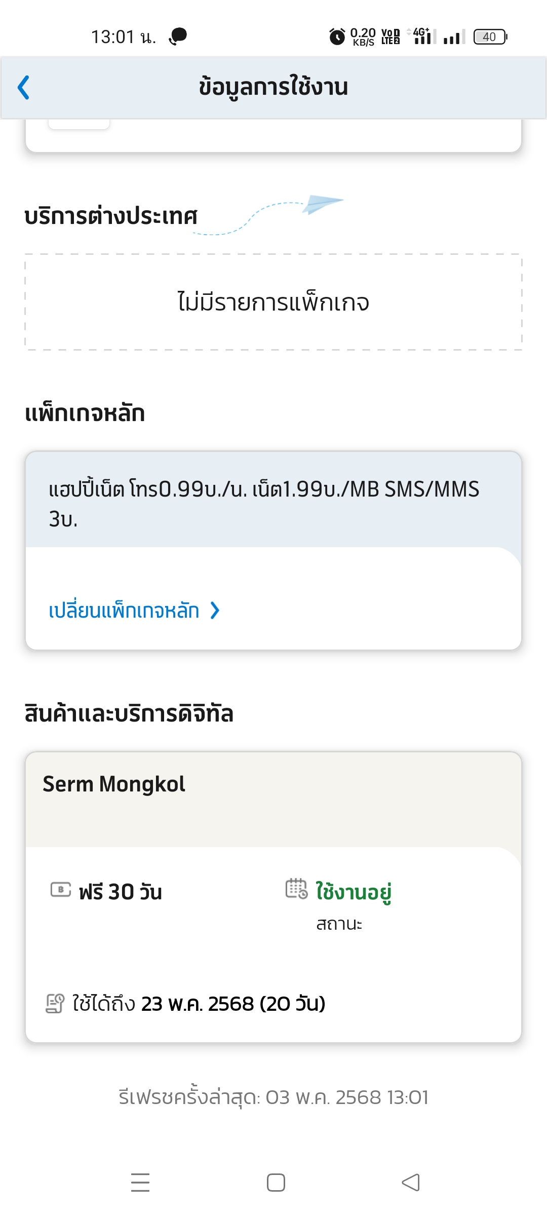 ต้องการยกเลิก สินค้าและบริการดิจิทัล ดีแทค seem mongkol