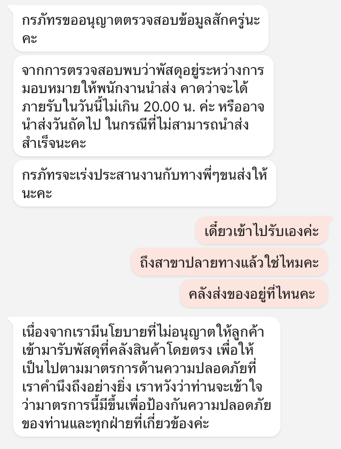 คือเราสั่งของไปเมื่อ3วันก่อน กะว่า คงมาส่งถึงเมื่อวานแน่ๆ เพราะเราจะไปต่างจังหวัด (จำเป็นจะต้องเอาของชิ้นนั้นไปต่างจังหวัด) แต่สรุปคือ ถึงวันนี้ ที้เราจะไปต่างจังหวัดพอดี ซึ่งกลัวว่าจะไม่ทัน เราเลยขอเข้าไปรับเองที่คลัง ซึ่งไม่ได้ แล้วพนักงานก็ยังไม่นำของมาส่ง เกรงว่าจะไม่ทัน เราทำอะไรได้บ้างคะ🥹