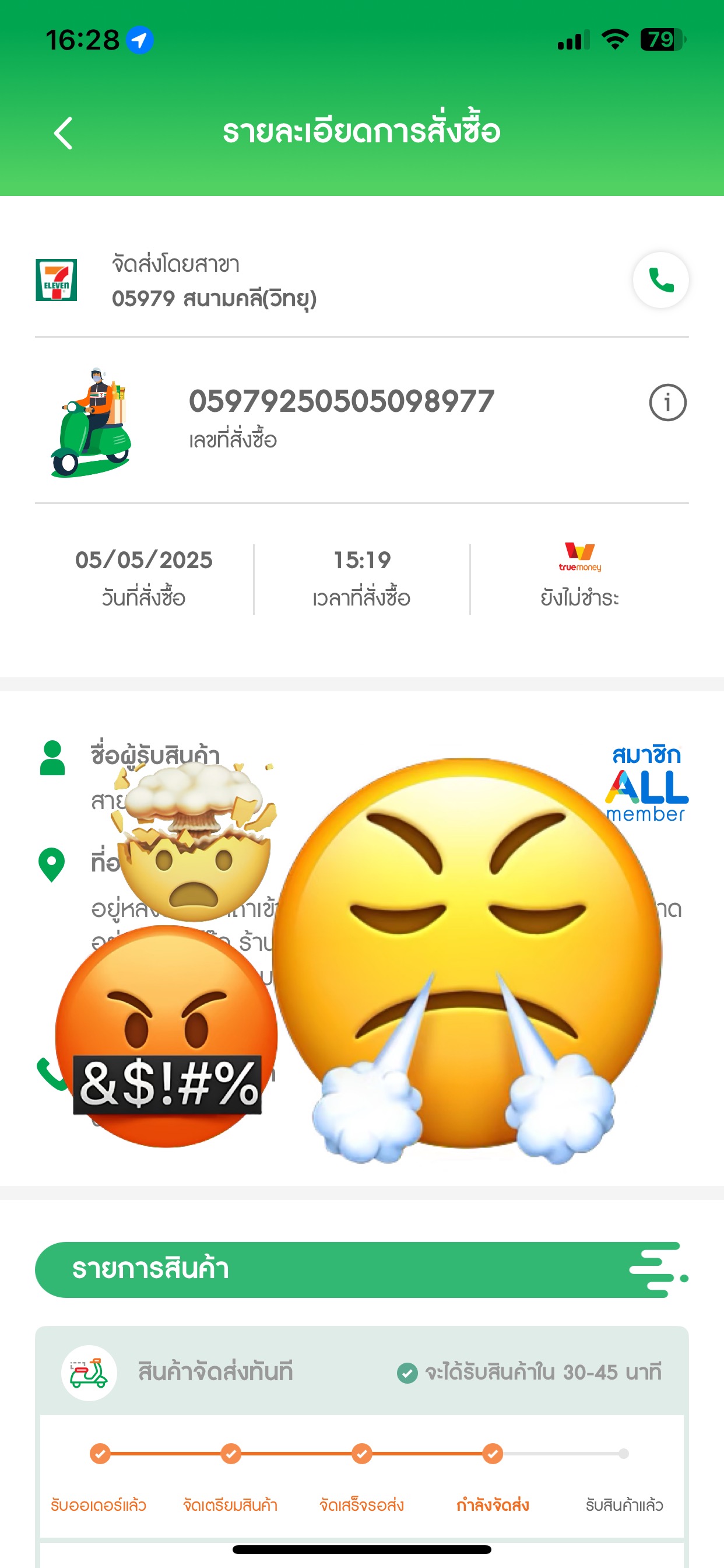 สั่งของเป็นชั่วโมงไม่มาส่งไม่โทรแจ้งบ้าบอไรทั้งสิ้นและการโทรเข้าแจ้งก็ยากมากคือไหนบอกรอ30-40นาทีโหยยเกินมากโทเข้าสาขาก้ไม่ได้
