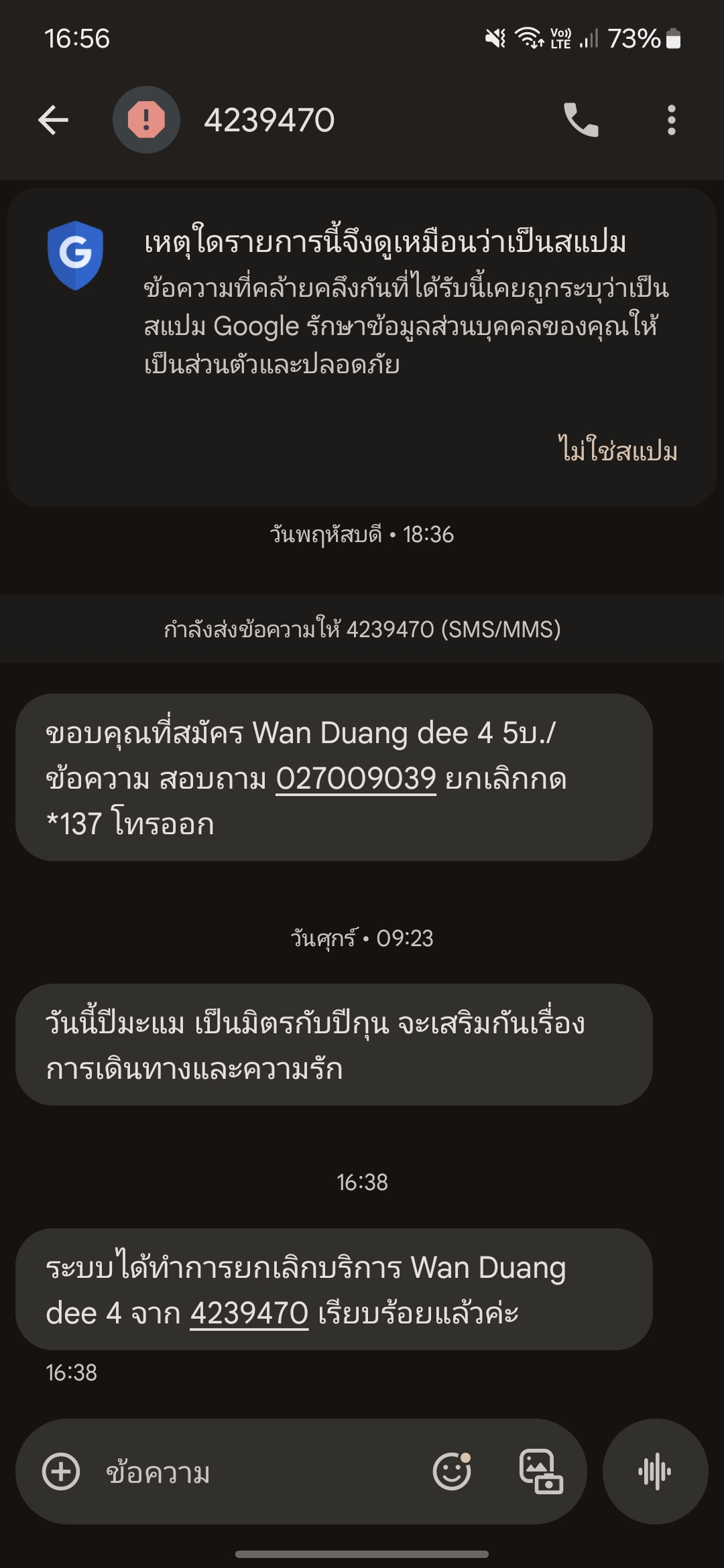 ตื่นเช้ามาอยู่ๆเห็นข้อความ "ขอบคุณที่สมัคร Horo Lucky Dee5 5บ./ข้อความ สอบถาม 027009039 ยกเลิกกด *137 โทรออก " งง นี่สมัครให้เองหรอหรือยังไง เพรา