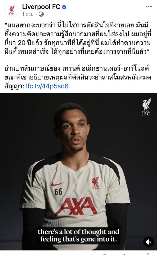 อ่านบทสัมภาษณ์ของ เทรนต์ อเล็กซานเดอร์-อาร์โนลด์ ขณะที่เขาอธิบายเหตุผลที่ตัดสินจะอำลาสโมสรหลังหมดสัญญา