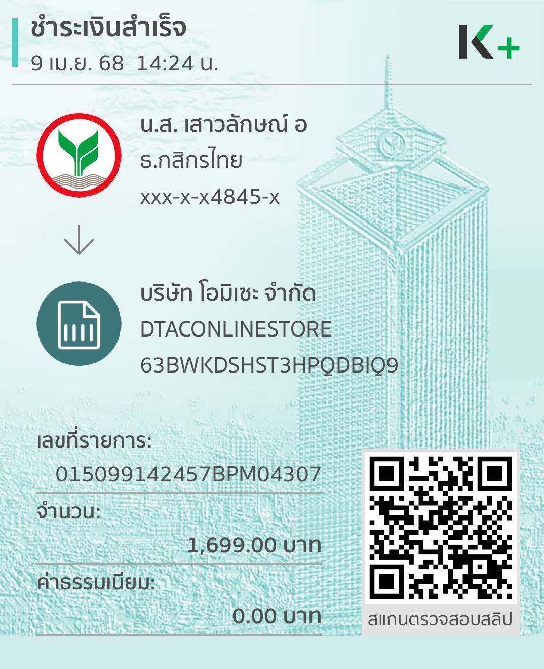 เมื่อวันที่ 9 เม.ษา ซัมซุง a06 5g เลือกโปร 699 ชำระค่าเครื่อง 1699 บาท