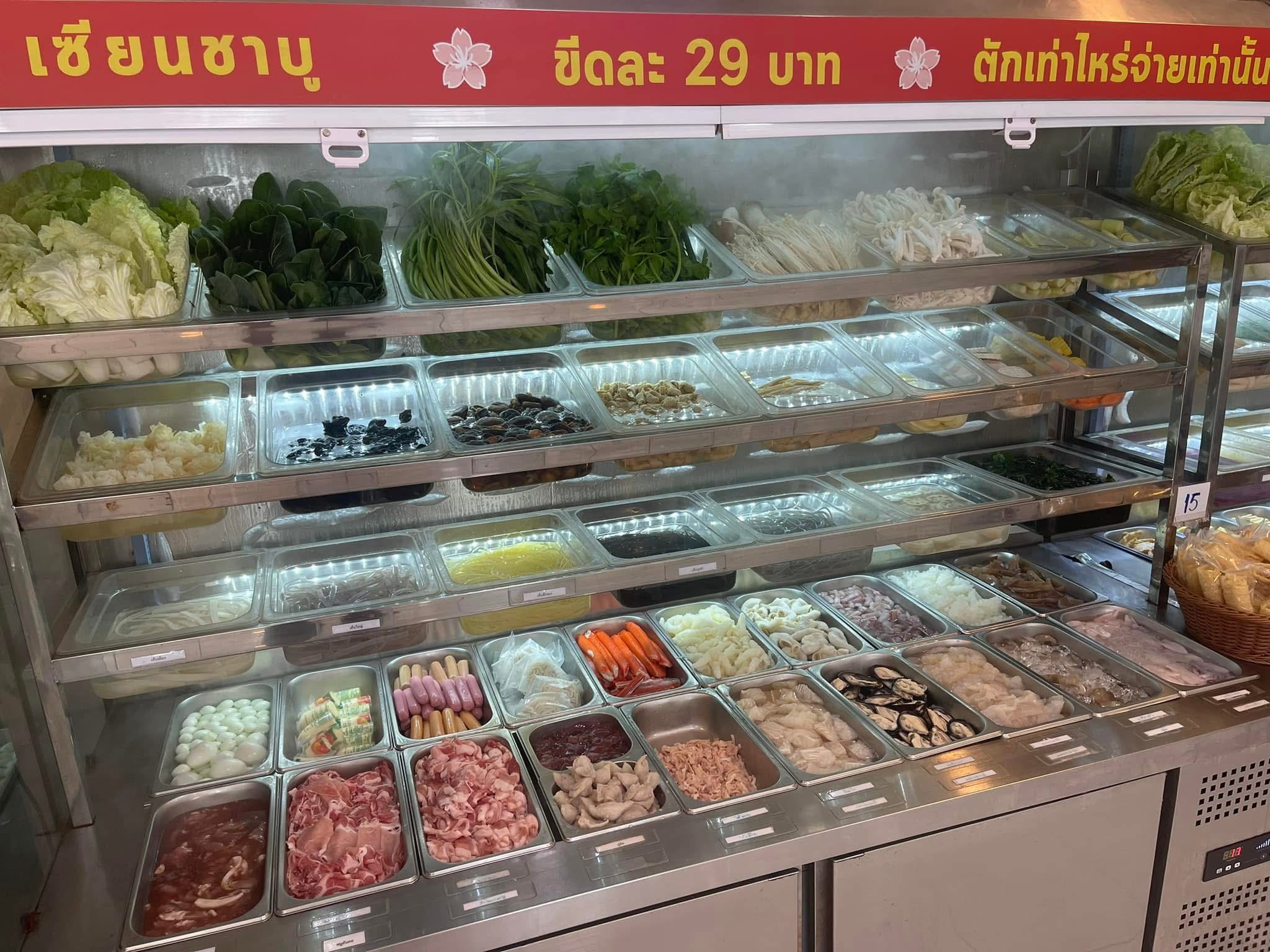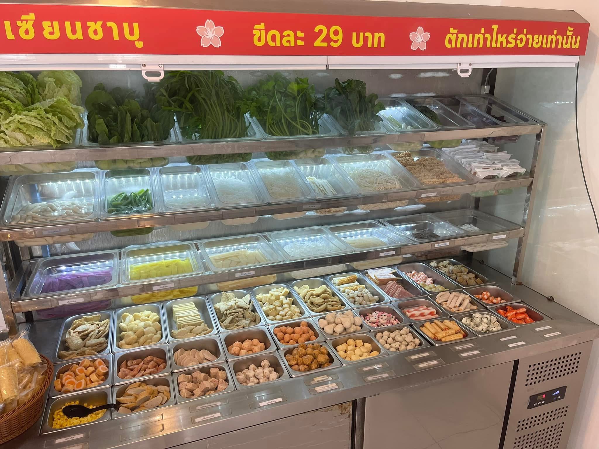 เป็นชาบูแนว “ตัก-ชั่ง-จ่าย” เหมือนบุฟเฟ่ต์ แต่คิดราคาตามน้ำหนัก ขีดละ 29 บาท