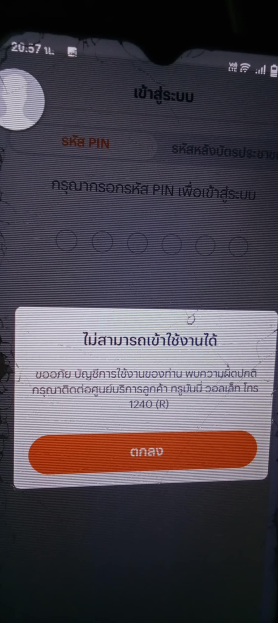 เข้าทรูมันนี่วอเล็ทไม่ได้ ทั้งที่ใส่รหัสถูกแล้ว มียอดเงินในบัญชีที่ต้องใช้ ช่วยด้วยคะ🙏😔