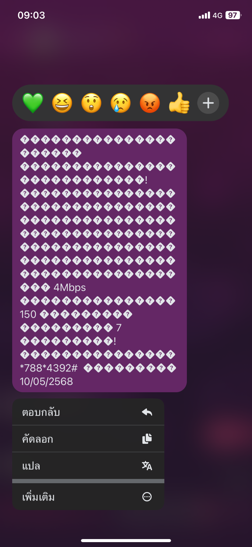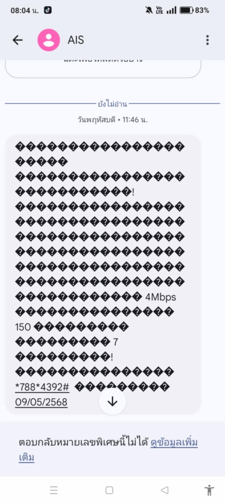 คือข้อความแจ้เข้าของพี่เรามันเป้นแบบนี้เกิดจากอะไรค่ะ Ais มาตอบหน่อยนะคะ