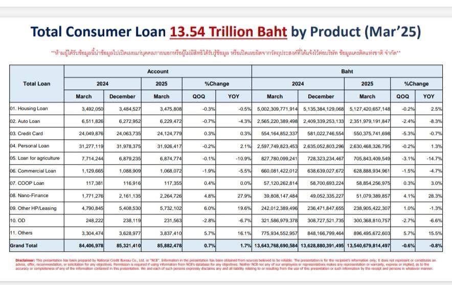 หนี้สินครัวเรือน เฉพาะในระบบเครดิตบูโร ไตรมาส 1 ปี 2568 (ข้อมูล ณ มีนาคม 68)