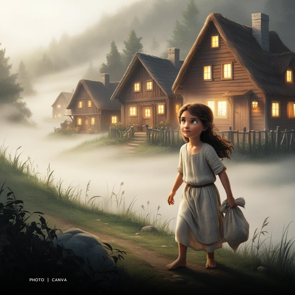 เส้นทางบนภูเขาเริ่มแคบลงเมื่อเข้าสู่ช่วงบ่าย หมอกที่เคยอยู่ห่างไกลเริ่มเลื้อยมาล้อมรอบ ลีโอนาเดินผ่านแนวไม้สูง เธอหมั่นหยิบเศษขนมปังจากกระเป๋าผ้าของยาย ทิ้งไว้ทีละชิ้น บางชิ้นตกลงบนหญ้าแห้ง บางชิ้นติดบนโขดหินเหมือนจุดสัญญาณเล็กๆ